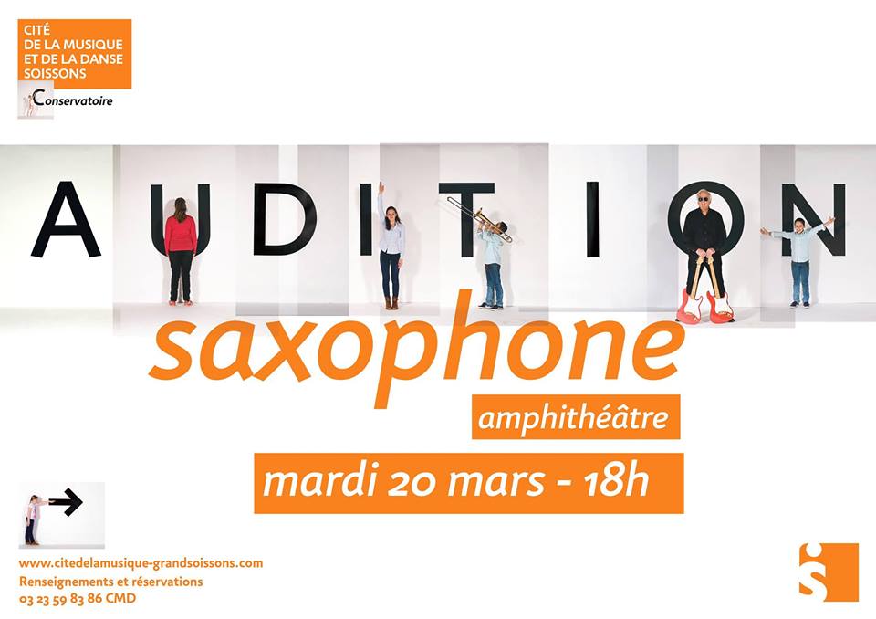 Les élèves des classes de saxophone vous invitent à leur audition dans l'amphithéâtre de la Cité de la Musique et de la Danse de Soissons. Entrée libre ! Renseignement et réservations : 03 23 59 83 86